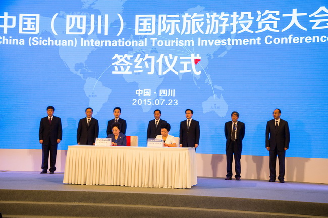 7月23日,集團(tuán)姜巖總經(jīng)理、鄭江副總會(huì)計(jì)師、戰(zhàn)發(fā)部陳賢君總經(jīng)理、資產(chǎn)板塊田群總經(jīng)理、景區(qū)板塊曲濤常務(wù)副總經(jīng)理等一行參加了在成都舉辦的“中國(四川)國際旅遊投資大會(huì)”。會(huì)上,姜巖總經(jīng)理代表集團(tuán)與四川省政府簽訂了《促進(jìn)中國港中旅集團(tuán)與四川省政府關(guān)於旅遊業(yè)發(fā)展戰(zhàn)略合作協(xié)定》。四川省委書記王東明、省長魏宏、國家旅遊局局長李金早、中國房地產(chǎn)業(yè)協(xié)會(huì)會(huì)長劉志鋒等領(lǐng)導(dǎo)出席會(huì)議。中國國旅集團(tuán)董事長兼總經(jīng)理王為民、華僑城集團(tuán)公司副總裁劉平春 、大連萬達(dá)集團(tuán)董事長王健林、新希望集團(tuán)董事長劉永好等120多家境內(nèi)外知名旅遊企業(yè)負(fù)責(zé)人參加了會(huì)議。