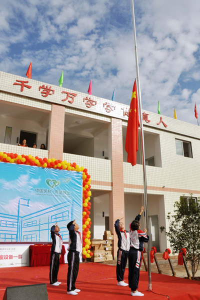 十月的川西南秋意漸寒,但在四川省資陽市雁江區(qū)丹山鎮(zhèn)中國免稅希望小學(xué)全體師生們的心里卻是暖意融融,燦如夏花。從9月開始大家再也不用擠在漏雨開裂的教室里上課,在泥濘的操場上玩耍了。在新落成的教學(xué)樓里,在平坦的水泥操場上,同學(xué)們正和幾位自北京中免集團(tuán)共青團(tuán)的大哥哥大姐姐一起認(rèn)真的讀書、開心的嬉鬧著……