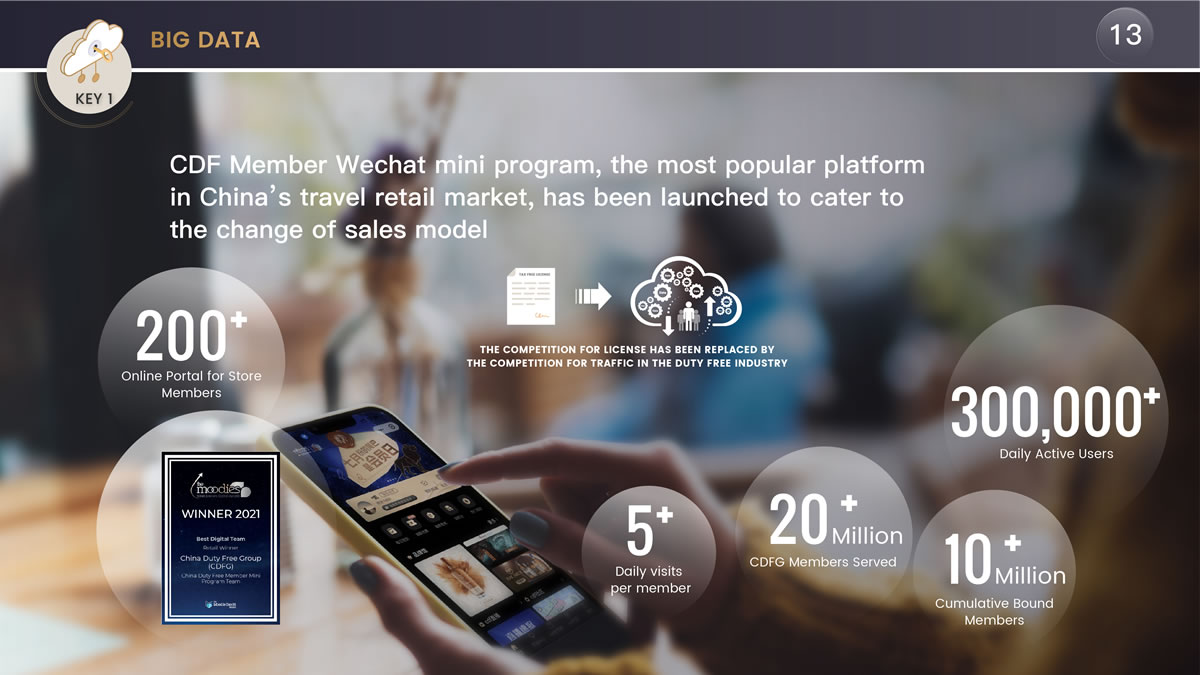 陳國強表示,"我們推出了基于會員的線上平臺cdf會員購,此外還積極迎合銷售模式的變化,推出了基于中免2000多萬會員的會員小程序,在流量為王的時代建立了中國旅游零售市場最大的流量平臺。"他介紹稱,"通過兩年多的運營,該會員小程序日活躍用戶達30多萬,成為中免甚至是中國旅游零售重要的流量平臺,未來機場口岸的客流恢復后還將成為打通中免線上線下的重要流量入口。"這一舉措也得到了業(yè)內(nèi)的高度認可,榮獲穆迪2021年度最佳數(shù)字團隊獎。