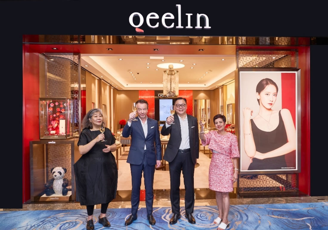 出席開幕儀式嘉賓包括(左起):中免國際買手團隊采購總裁李美莉女士、Qeelin品牌首席執(zhí)行官Christophe Artaux、中免國際零售運營總裁張毅鈞先生及樟宜機場集團空側(cè)特許經(jīng)營部高級副總裁Chandra Mahtani女士。