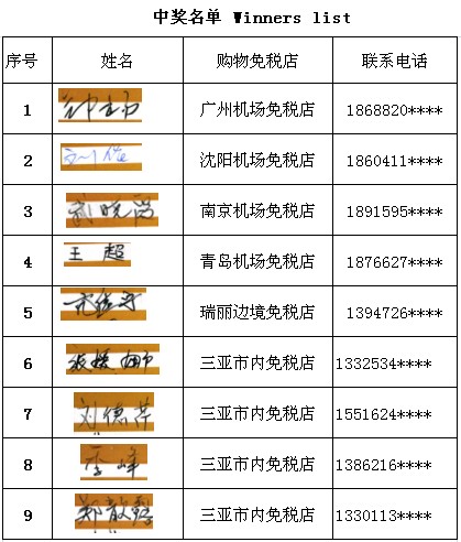 中免集團(tuán)發(fā)起的“離島免稅周年慶 沖刺倫敦觀奧運(yùn)”大型促銷活動(dòng)在中免集團(tuán)旗下19家免稅門(mén)店開(kāi)展,活動(dòng)現(xiàn)已結(jié)束,其中“倫敦奧運(yùn)觀賽之旅”中獎(jiǎng)?lì)櫩鸵言诒本┦蟹綀A公證處公證人員嚴(yán)格監(jiān)督公證下抽取產(chǎn)生,中獎(jiǎng)?lì)櫩兔麊伟l(fā)布如下: