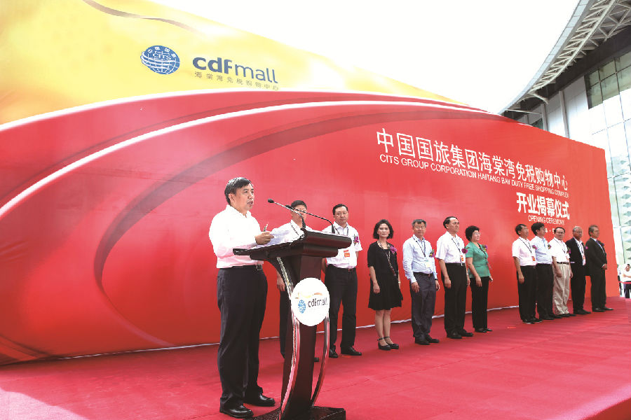 開業(yè)儀式上,王為民發(fā)表了熱情洋溢的講話。他首先代表國旅集團對各界的關(guān)心和支持表示衷心的感謝,隨后簡要介紹了國旅集團的基本情況、主要業(yè)務(wù)和今后發(fā)展方向。他回顧了海南離島免稅政策、三亞市內(nèi)免稅店發(fā)展歷程。2007年,國旅集團提出“在海南開展離島免稅購物”的構(gòu)想,并配合海南省委省政府爭取離島免稅政策;2011年,中免三亞免稅店作為離島免稅業(yè)務(wù)試點啟動,極短時間內(nèi)便迅速成為海南省日均接待游客過萬的旅游景點之一,至今已累計接待顧客1200多萬人次?!奥糜渭用舛愘徫铩币殉蔀楹D下糜蔚男旅?。他向與會嘉賓介紹了海棠灣免稅購物中心項目的特點和優(yōu)勢,并表示項目的落成開業(yè)將極大地釋放海南離島免稅政策紅利,助力海南國際旅游島建設(shè),也必將成為我國免稅業(yè)發(fā)展的里程碑。他說,海棠灣免稅購物中心是全球最大的免稅商業(yè)綜合體,總面積達12萬平米、集購物、休閑、娛樂、餐飲等多功能于一身,具有國際先進水準、地標性的建筑。它集合優(yōu)勢資源,招商引進了300個全球頂級時尚品牌和精心準備的超過10萬個單品;其中有的是攜手合作伙伴,打造的最新、最時尚的概念店、全球最大和亞洲最大的品牌旗艦店。國旅集團將以一流的品牌、一流的商品、一流的服務(wù)、一流的環(huán)境,為海南省、三亞市和來海南的廣大游客帶來持續(xù)不斷的驚喜和發(fā)現(xiàn)!展望未來,國旅集團將進一步堅定深耕海南旅游市場的信心和決心,通過積極整合旗下免稅、旅行社等多業(yè)務(wù)板塊資源,不斷發(fā)揮在資金、品牌資源、運營、管理等方面的優(yōu)勢,利用海棠灣免稅購物中心這個全新平臺,積極推動國際旅游島建設(shè),為廣大游客奉獻更為豐富多彩的旅游購物體驗。他堅信,有社會各界的鼎力支持和關(guān)愛,有全體員工的智慧和奉獻,海棠灣免稅購物中心一定會拿出驕人的業(yè)績,成為國家海岸獨具魅力的亮麗風景,為海南旅游業(yè)發(fā)展做出積極的貢獻!