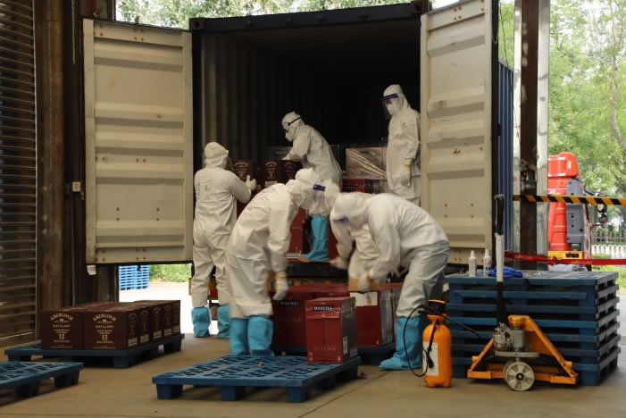 近日,又一批海運(yùn)集裝箱抵達(dá)物流基地。首都機(jī)場(chǎng)聯(lián)合黨支部成立的黨員先鋒隊(duì)配合執(zhí)行消殺卸貨工作。大家先對(duì)集裝箱進(jìn)行徹底無(wú)死角的全面消殺,隨后將貨物分批搬運(yùn)、拆箱,對(duì)貨物單個(gè)最小包裝物進(jìn)行逐一消殺,最后再統(tǒng)一裝箱。歷時(shí)5個(gè)小時(shí),將全部貨物消殺完畢,為后續(xù)工作建立了第一道安全保障。