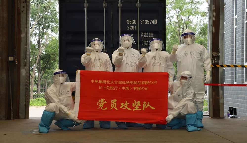 一個(gè)黨支部就是一座堡壘,一名黨員就是一面旗幟。哪里有困難,哪里就必須由黨員干部帶頭扛起來(lái)。中免日上的物流倉(cāng)儲(chǔ)基地作為防疫第一線,接收、存放著來(lái)自海外的國(guó)際貨品。其中,卸貨崗是最令人望而卻步的艱苦崗位。盛夏的北京,酷暑難耐,每次貨物到港后,員工要身著密不透風(fēng)的防護(hù)服,配合做好消殺,并在高溫環(huán)境中完成對(duì)海運(yùn)集裝箱內(nèi)貨物進(jìn)行卸貨、搬運(yùn)、二次消毒。勞動(dòng)強(qiáng)度高,感染風(fēng)險(xiǎn)大,非常人可以忍受。針對(duì)此情況,首都機(jī)場(chǎng)聯(lián)合黨支部迅速成立黨員先鋒隊(duì)專門保障此崗位,讓黨員身份亮出來(lái)、干部責(zé)任顯出來(lái),做到了關(guān)鍵崗位有黨員、困難面前有黨員,讓黨員干部充分發(fā)揮先鋒模范作用,切實(shí)發(fā)揚(yáng)黨員干部責(zé)任擔(dān)當(dāng)精神。