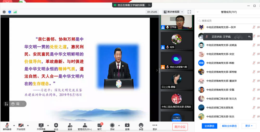 2021年7月15日下午,中旅免稅黨委舉辦第六期“黨史大講堂”專(zhuān)題培訓(xùn),此次培訓(xùn)由海免公司黨委承辦,海免公司黨委班子成員、部分黨員在會(huì)議室集中參加培訓(xùn),中旅免稅其他各級(jí)黨組織黨員和入黨積極分子共700余人通過(guò)線上方式聆聽(tīng)了此次專(zhuān)題培訓(xùn)。