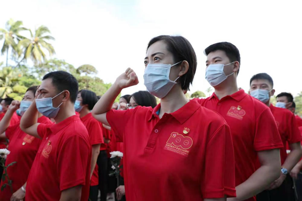 海南免稅黨委組織黨員及預(yù)備黨員60人,赴海口人民公園參加“海南省國(guó)資系統(tǒng)千名黨員宣誓”活動(dòng),獻(xiàn)禮建黨百年。