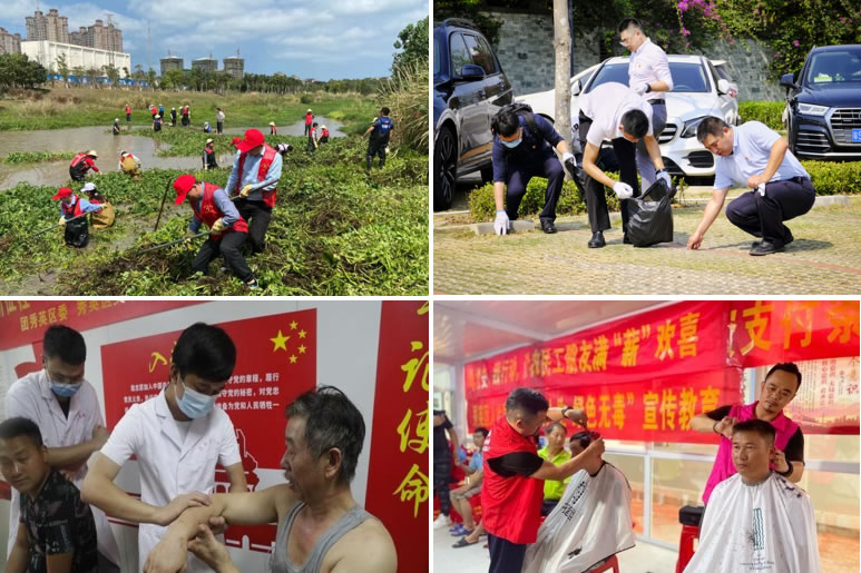 中免(??冢┩顿Y公司黨支部聚焦服務(wù)工程建設(shè)、豐富企業(yè)文化、踐行社會(huì)責(zé)任等方面把實(shí)事辦實(shí)辦好。為??趪?guó)際免稅城項(xiàng)目員工“送清涼”,購(gòu)置了防暑防曬物資,備好冰鎮(zhèn)綠豆湯,不定期推出“驚喜菜”。精心打造“黨史文化墻”,設(shè)立“圖書角”,開展“微課堂”讀書活動(dòng),為員工訂閱報(bào)紙期刊,開展職工趣味運(yùn)動(dòng)會(huì)、友誼籃球賽,全面更新公司形象展示標(biāo)識(shí)和宣傳欄,設(shè)置新人榜,不斷打造企業(yè)文化新亮點(diǎn)。黨支部聯(lián)合當(dāng)?shù)毓?huì)、共青團(tuán)等機(jī)構(gòu)共同開展環(huán)保志愿活動(dòng)和公益普法活動(dòng),提供免費(fèi)體檢、義剪服務(wù),以實(shí)際行動(dòng)關(guān)愛自貿(mào)港基層建設(shè)者,彰顯央企風(fēng)范。