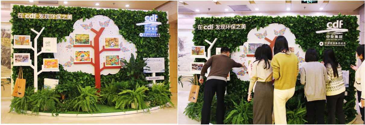 近日,在中免集團(tuán)總部及三亞國(guó)際免稅城、??谌赵聫V場(chǎng)免稅店、??诿捞m機(jī)場(chǎng)免稅店舉行了“在cdf發(fā)現(xiàn)環(huán)保之美”環(huán)保互動(dòng)活動(dòng),活動(dòng)現(xiàn)場(chǎng)展示了《2021中免集團(tuán)環(huán)保綠皮書》、優(yōu)秀環(huán)保海報(bào)設(shè)計(jì)作品,并與消費(fèi)者互動(dòng)在環(huán)保樹上留下環(huán)保印記,領(lǐng)取定制環(huán)保手提袋、環(huán)保臺(tái)歷等紀(jì)念品。